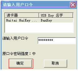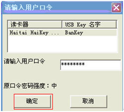 點(diǎn)擊“確定”后提示輸入U(xiǎn)SBKEY的口令: